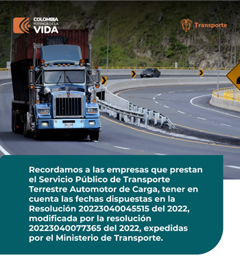 El Ministerio de Transporte se permite recordar que mediante resolución 20223040077365 del 22 de diciembre de 2022, se modificó el parágrafo del artículo 19 de la Resolución 20223040045515 de 2022, en los siguientes términos: